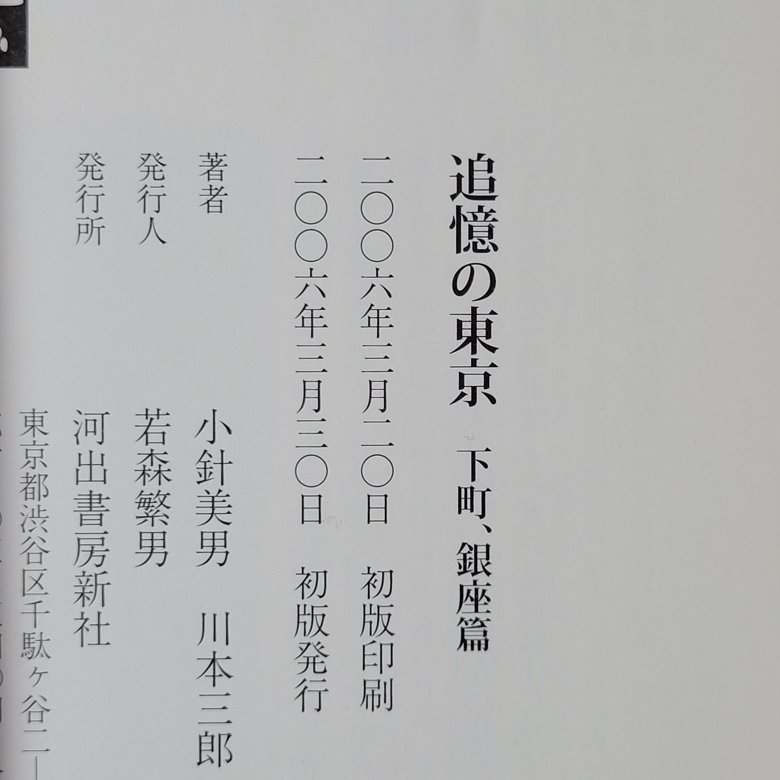 本『追憶の東京 下町・銀座篇』