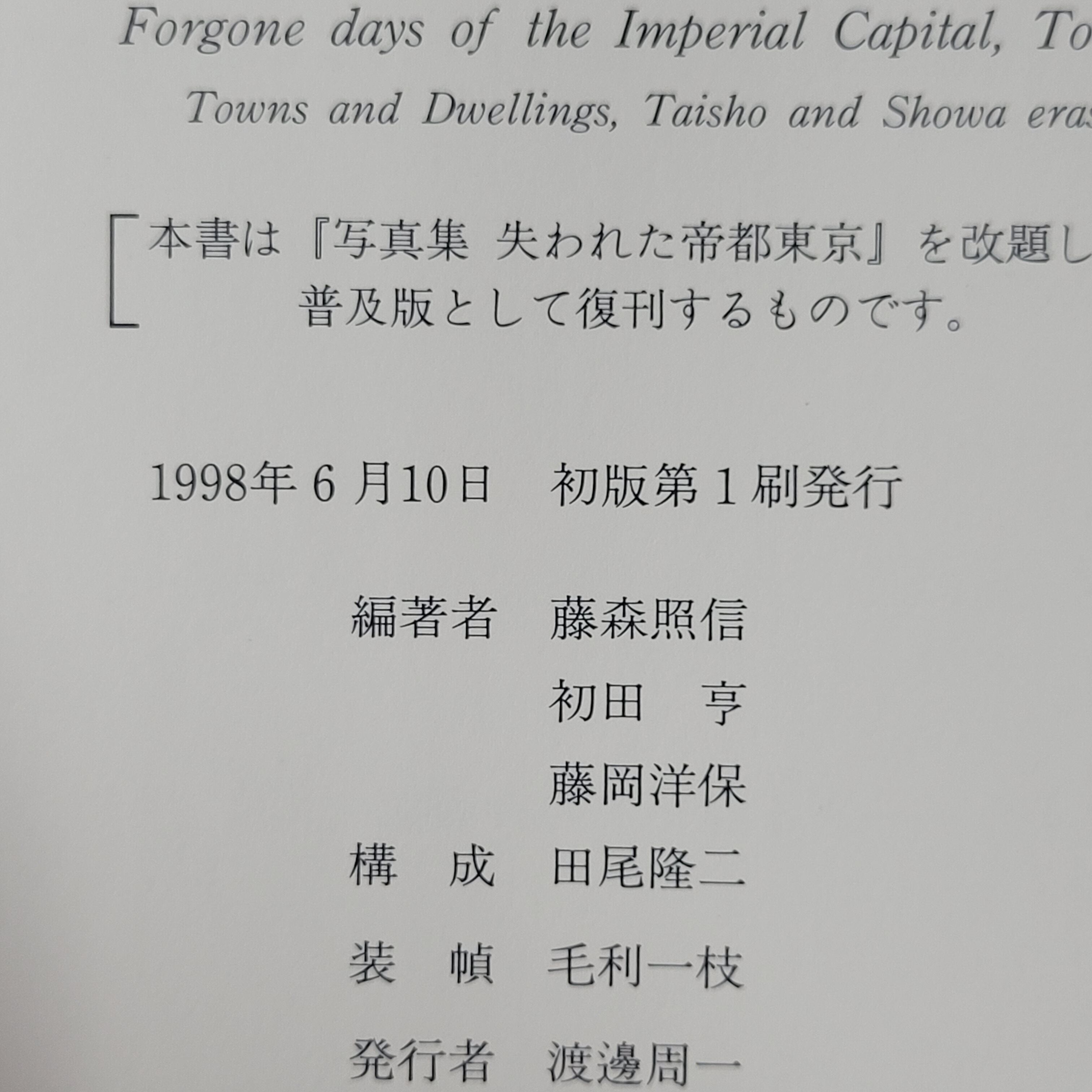 本『写真集 幻景の東京 大正・昭和の街と住い』